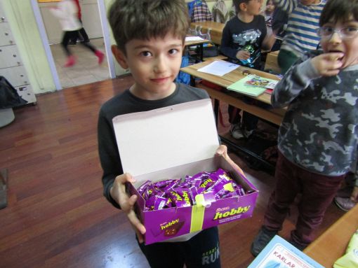 Beslenme destekleri devam ediyor... ![]() Tuna Can, küçük çikolata ile arkadaşalrının gönlünü kazandı. Emir Esad, annesi Kübra hanımın yolladığı kakaolu kurabiyeleri dağıttı. Eski bilgisayarımıza bakım yapan sevgili velimiz Halil hoca ( Bingöl ) hem bilgisayarımızı getirdi hem de eşi Ayşe hanımın yaptığı pastayı pastayı. Servisini de bizzat kendisi yaptı hocamız. İkramlar için; Can - Güleç ve Bingöl ailelerine teşekkür ediyorum. Halil hocaya ayrıca verdiği teknik destekten ötürü de bir başka teşekkür borçluyuz. ![]() ![]() ![]() ![]() ![]() ![]() |