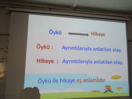 SINIF ÇALIŞMALARI ![]() Hikayenin özetlemesini yaptık, metinden sorular çıkartarak hikayenin ne denli anlaşıldığını kotrol ettik. Ardından sözlü ifade yetenekleri verdikleri yanıtlarla ölçülmeye çalışıldı. Devam ettiğimiz ayak, hikaye tamamlama kısmı oldu. Tarafımdan tahtada bir hikeye başlandı. Çocuklarımdan bu hikayeyi geliştirmelerini ve sonuçlandırmalarını istedim. Asıl uğraş alanımız ise " Eş anlamlı kelimeler " oldu. Eş anlamlı kelimeler konusuna başladık bugün. Konunun tanımını yaptık. Tahtaya örnekler yazdık. Bir adım daha atarak sınıf uygulaması yaptık. Bu uygulamanın da iki aşaması vardı. Kolaydan zora. Önce dört yapraklı yoncanın dört yaparağına iki adet eş amlamlı sözcüğü yerleştirdik. Eş anlamlıları bulup boyamalarını istedik. İkinci olarak da yine verilen bazı sözcüklerin eş anlamlılarını bulmalarını istedik. İki tanesinde zorlansalar da küçük bir destek ile devam ettiler yollarına. Bu alnadaki son uğraşımız da yansı üzerinden kınun pekişmesini sağlamak oldu. ![]() ![]() ![]() |