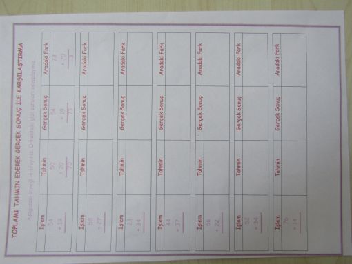 Ev etkinliğimizin bir tanesinin okunmakta zorlanılan kısmı.