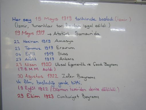 SINIF ÇALIŞMALARI ![]() Atatürk'ün kısa yaşam öyküsü ile başladık. Bir bilgi notu hazırladık bunula ilgili. Ellerindeki önemli evraklar dosyalarına koyuldu. Bu akşama iat ev etkinliğimiz de bununla ilgili. Gerek bu çalışma kağıdı, gerekse tahta görüntüleri tekrar edilecek. Birinci dünya savaşına girişimiz ile başladık konuya. ( Bunların hiç birinin bu denli geniş şekilde konularla alâkası da yok bu arada ) İzmir'in işgali ve Kurtuluş Savaşımızın başlaması ile sürece girdik ve en son yine İzmir'de düşmanı denize dökerek sonlandırdık. Bu arada pek çok da ayrıntı var. Dilerseniz bir zorlayın bakalım; akıllarda neler kalmış. Sizin bilemediğiniz, belki de unuttuğunuz bazı şeyleri onlar size anımsatabilecek mi ? Bu arada bir iki küçük video ve filmler de izledik. İzmir'in işgali sırasında Hasan Tahsin ve ilk kurşun ile meşhur filmimiz olan Veda filminin bir kısmı. Bu hafta ve önümüzdeki hafta içerisinde zaman zaman bu ara bilgilendirmelere yeniden döneceğiz. ![]() ![]() |