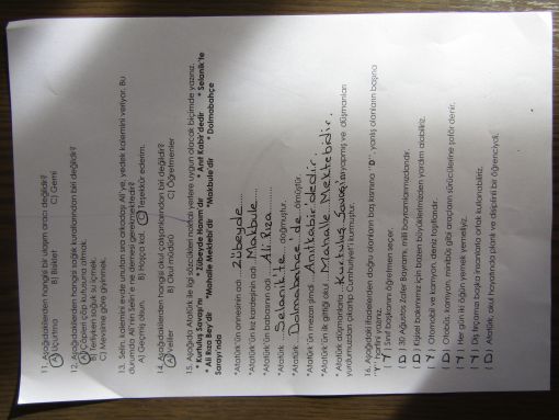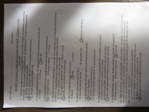 Hayat Bilgisi Değerlendirme çalışması hakkında... ![]() Henüz görmedikleri sadece bir konu başlığından iki soru yönelttim. Her ikisi de " Ulaşım Araçları " konu başlığı altındaydı ancak hiç bir şekilde onları zorlayacak tarz sorular değildi. Çoğunluğa yakının bir soruda takıldıklarını gözledim. On ikinci sorunun doğru yanıtı ( A) şıkkı olması gerkirdi ancak bazı çocuklarım ( B ) şıkkını işaretlemişler . Bu işaretleme aslında çok da yanlış bir işaretleme olarak değerlendirilmemeli. Zira soru yapısında küçük bir eksiklik olabilir. Bakışa göre ( B ) şıkkı doğru olarak öne de çıkabilir hatta. Biz sağlık açısından zorduk sanırım. Ankara şıkkı çeveresel boyutta olduğundan değerlendirmemiz bu şıkkın doğru olması yönündeydi. Ancak Bursa şıkkı da " Terli iken soğuk su içmek " idi sanırım . Buradan bakılırsa elbette bu eylem de sağlığı olumsuz olarak etkileyecektir. O şıkka içmek yerine içmemek deseydik karmaşa olmazdı. Bu bağlamda kağıtlarda her ne kadar Bursa şıkkını işaretleyenler tarafımdan yanlış olarak işaretlendi ise de bu işaretleme yanlış olarak değerlendirilmeye de bilinir. Ben her çalışmadan olduğu üzere bu çalışmadan da kendime ait dönütleri topladım. Gerek bireysel, gerekse genel anlamda takılınan sorular ve konu başlıkları çıkarılmıştır. Bu konu başlıkları bir başka öğretim metodu kullanılalarak yeniden ele alınacaktır. ![]() ![]() |