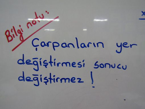 İki ayrı çarpanın yer değiştirmesi ile sonucun değişmeyeceğini anlattık.