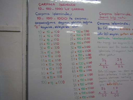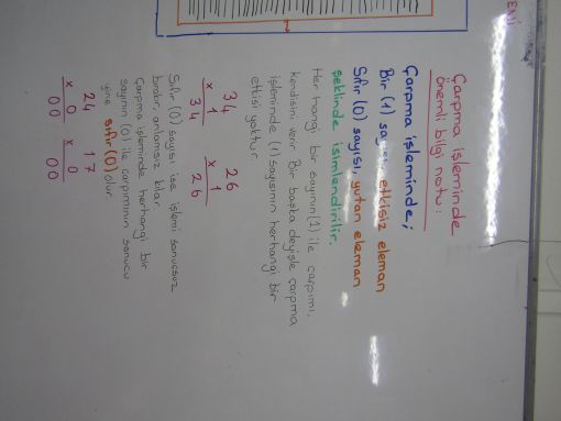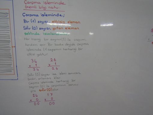 SINIF ÇALIŞMALARI ![]() Çarpma işleminin anlamını yeniden ele aldık. Nasıl yapılması gerektiğini yeni örnekler üzerinden aktardık. Çarpma işleminde 0 ve 1 sayısılarının önemini ve etkisini anlattık; bir sonraki adımımızda. Bununla ilgili bilgi notları yazdık önce ardından tahtada uygulamalı örnekler verdik. Sıfırın ve birin niçin yutan ve etkisiz elaman olduğunun ayrıntısına girdik. Bir sonraki konu başlığımız ise 10 - 100 ve 100 ile çarpımdı. Kolay yoldan çarpma / sıfırlar ekleyerek çarpmanın nasıl yapıldığını yine çok sayıda örneklerle gösterdik. Ev etkinliğimizin bir parçası da buradan verildi. Sınıf çalışması olarak da iki ayrı çalışma kağıdı üzerinden çalışma yürüttük. ![]() ![]() ![]() ![]() ![]() ![]() ![]() ![]() ![]() ![]() ![]() |