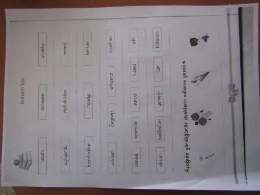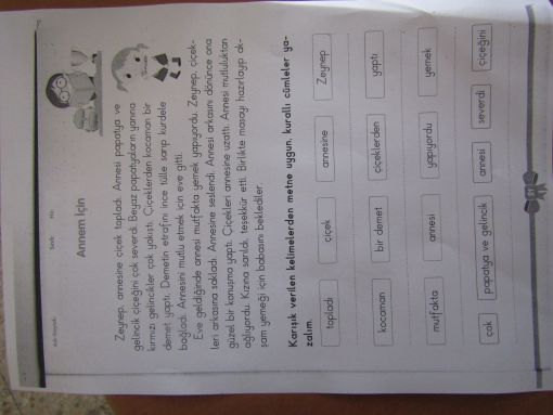Bunlardan ilki Türkçe dersine ait basit bir çalışma kağıdı.