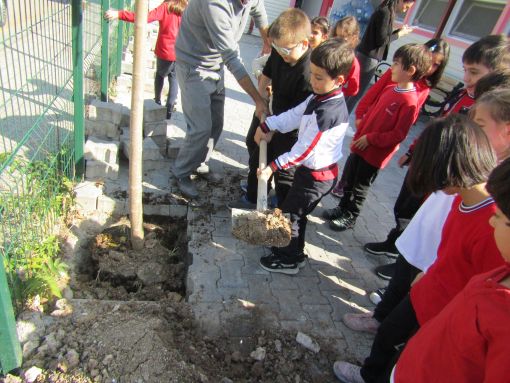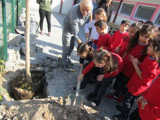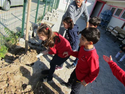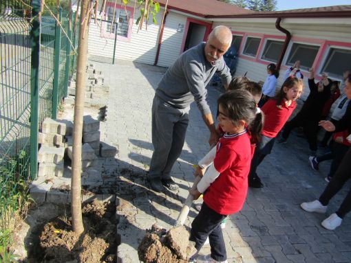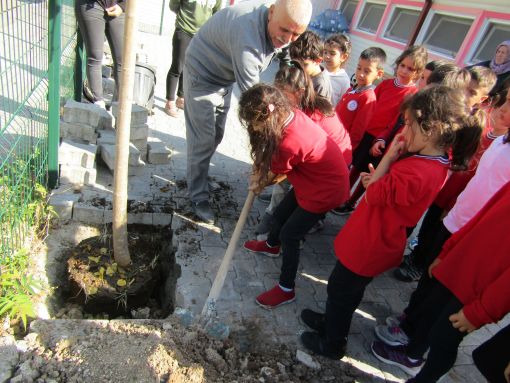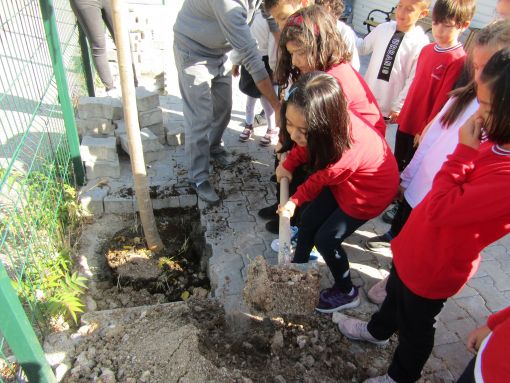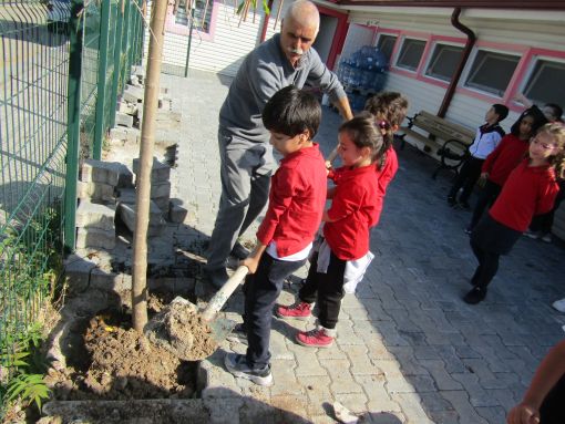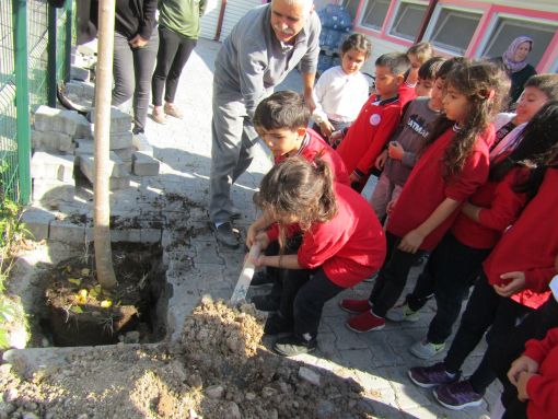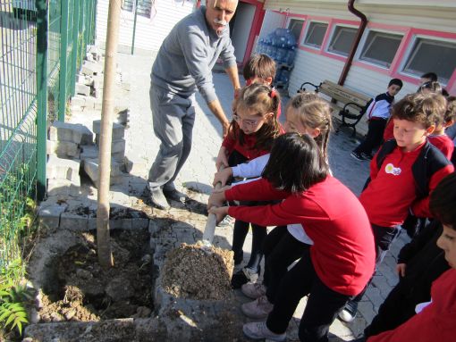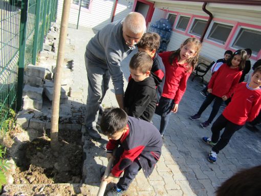 Her sınıf için ağaç dikim yeri de ayarlanmıştı. her sınıf kendisi için ayrılan alana bu ağaçları görevliler eşliğinde diktiler. Çocuklarım için de farklı ve heyecanli bir uğraş oldu.