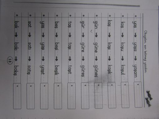 Yazma ödevi için de bir adet fotokopi verildi.