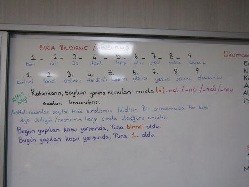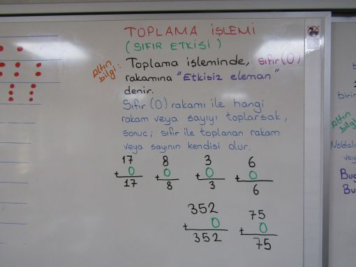 GÜNÜN ÇALIŞMALARI... ![]() Önce sıralama sayılarının gösterimi ile başladık. Rakam ve sayıların yanına getirilen noktanın ( . ) ne anlama geldiğini anlattık. sınıfta uygulamalı olarak gösterdik. Matematik dersinin ikinci kısmında ise sıfırla toplama konusunu verdik. Bunu önce tahtada ve ardından sınıf ortamında uygulayarak aktarmaya çalıştık. ![]() ![]() |