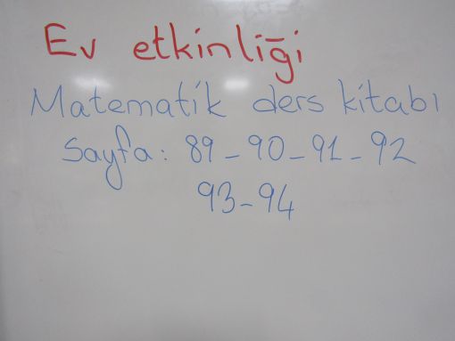 Bu akşama ait verilen ev etkinliğimizi sadece matematikten verdik. Matematik ders kitabı ve onun ilgili sayfalarındaki çalışmalar bu kaşam için yeterli olacaktır.