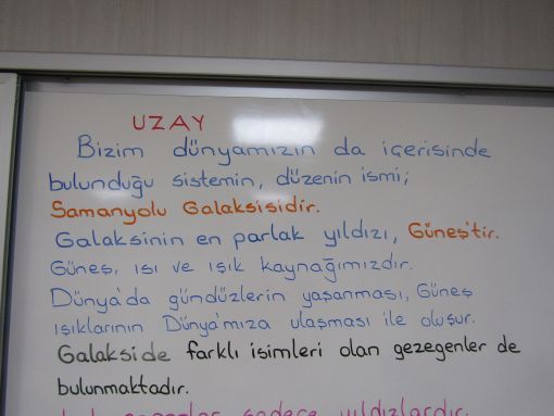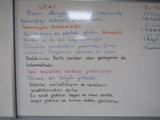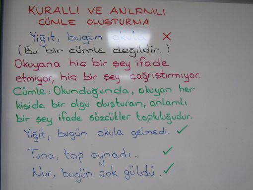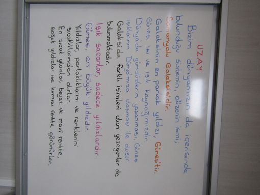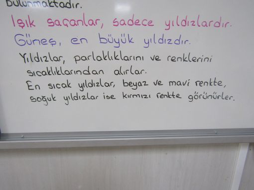 GÜNÜN ÇALIŞMALARI... ![]() Okuma metninde yer alan bilgilendirmeler doğrultusunda fırsat eğitimi kapsamında " Uzay - yıldızlar " konusunda bilgilendirmeler yaptık. Basit düzeyde de olsa yıldızler hakkında bilgi aktarımı yaptık. Yazı tahtamıza notlar yazdık. Günün ağırlıklı çalışma alanı, Türkçe oldu. Bugünkü konu başlığımız, daha önce girişini yaptığımız cümle oluşturmaydı. Konuya başlamadan önce bu alandaki geçmiş öğrenilenleri tekrarlayarak başladık. Ses, hece ve kelime bilgisi ile yola çıktık ve buradan ileriye ket vurarak cümleye geçtik. Cümlenin ne demek olduğunu anımsadık. bununla ilgili açıklamalarda bulunduk. Bir sonraki adımımız, anlamlı ve kurallı cümle oluşturmaktı. Bununla ilgili de gerek yazılı ve de gerekse sözlü örnekler verdik. Sınıf içi çalışmalar yaptık. ![]() ![]() ![]() ![]() ![]() ![]() ![]() ![]() |