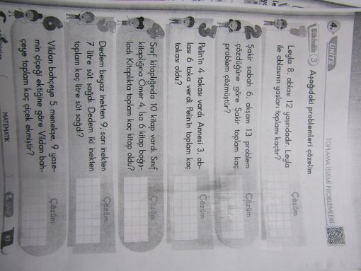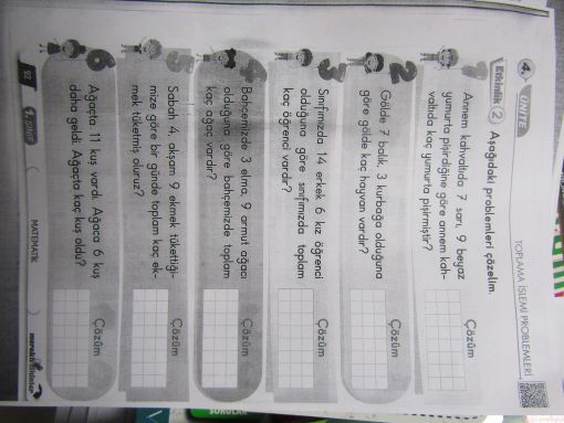 Bugün öğretmeye başladığımız matematik dersine ait toplama problemlerinden verdik ev etkinliğimizi.