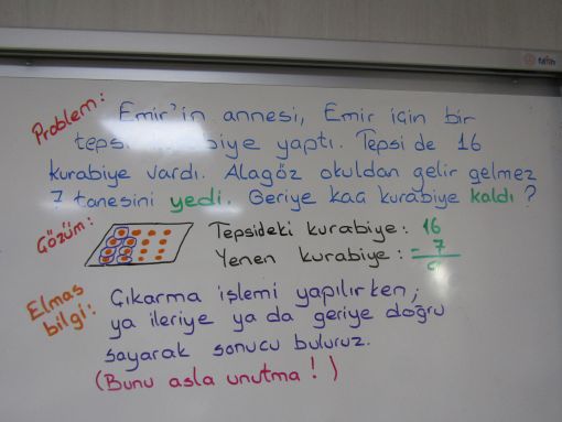 GÜNÜN ÇALIŞMALARI... ![]() Yazı tahtamıza açıklamalar yazdık, püf noktalarının üzerine bastık, bilgi notları yazdık. Örneklemler üzerinde yürüdük. Tahtamızda da problemler çözdük. ![]() ![]() |