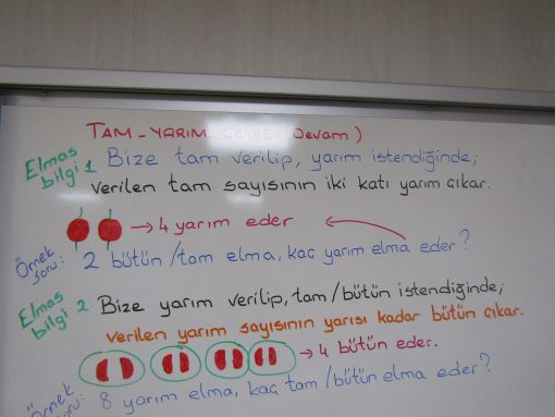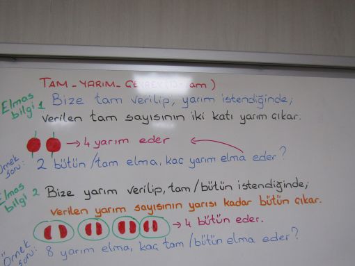 GÜNÜN ÇALIŞMALARI... ![]() Bu konu başlığını çok fazla önemsiyorum. Dört işlemden sonra matematiğin en ciddi konu başlığıdır bu . Bu nedenle bugün tam gün ve çeşitli şekşllerde bu konuyu ele aldık. Tahtamıza bu alanla ilgili bilgi notları yazdık. Her ne kadar çok iyi oturduğunu düşünmesem ve de bu konuda çok acaeleci davranmamam gerektiğini bilsem de yine ufak ufak girişler yaptık. Elmas bilgi başlığı altında püf noktalarını anlattık. Neyi nasıl yapmaları gerektiğini, izlemeleri gereken yolları aktardık. İki ayrı kaynaktan akıllı tahtayı kullanarak konu pekiştirmesi yaptık. Son olarak ta bu konu başlığı altında yine akıllı tahta üzerinden oyun oynadık. ![]() ![]() ![]() |