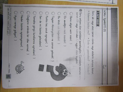 Bir adet ev etkinliği verdik. Bu etkinliğimiz, bugün vermeye devam etttiğimiz noktalama işaretleri konusundan.