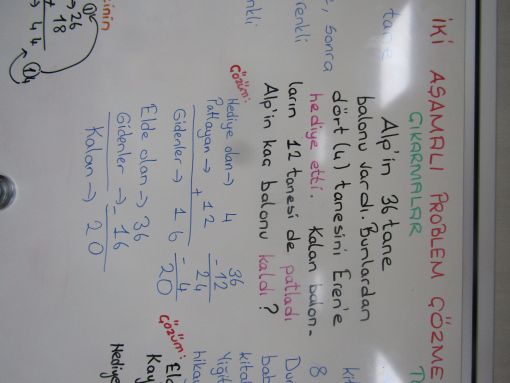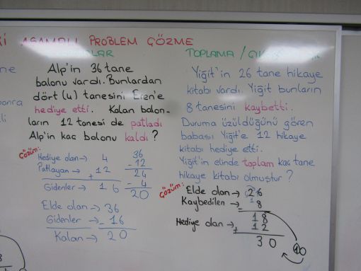 GÜNÜN ÇALIŞMALARI... ![]() Birden çok işlem gerektiren matematik problemleri üzerinde çalışmalar yaptık: Önce iki toplama ardından iki çıkarma ve en sonra da toplama ile birlikte çıkarma gerektiren işlemler içeren problemler sorduk. Yazı tahtamızda adım adım ilerleyerek çözmeye çalıştık. Benzer matematik problemleri üzerinde çalışmakta oldukça yarar görüyorum. ![]() ![]() ![]() ![]() ![]() ![]() |