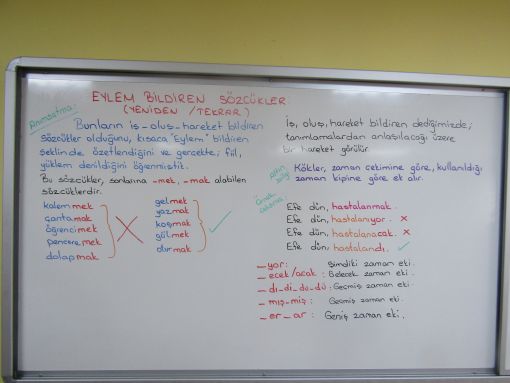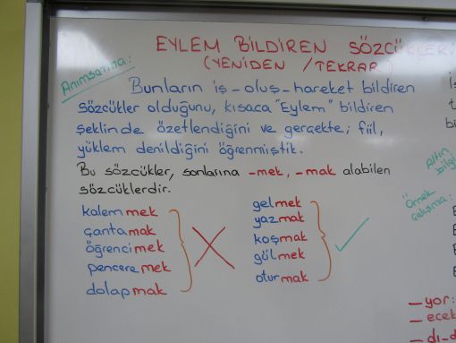 Ortaokulda " yüklem / fiil " diyeceğimiz ancak bulunduğumuz sınıfta kısaca " Eylem bildiren sözcükler " diye özetleyeceğimiz, iş / oluş / hareket bildiren sözcükler, özellikle kurallı cümle oluşumlarında son derece önemlidir.